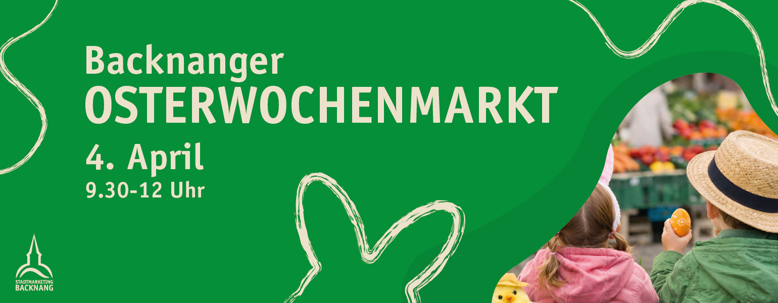 Die Eiersuche auf dem Backnanger-Wochenmarkt: Vor allem unsere jüngeren Bürgerinnen und Bürger sind herzlich zum Osterwochenmarkt eingeladen, bei dem die Marktbeschickerinnen und Marktbeschicker bunte Ostereier an ihren Ständen verstecken und die Kinder vor eine spannende Suche stellen.